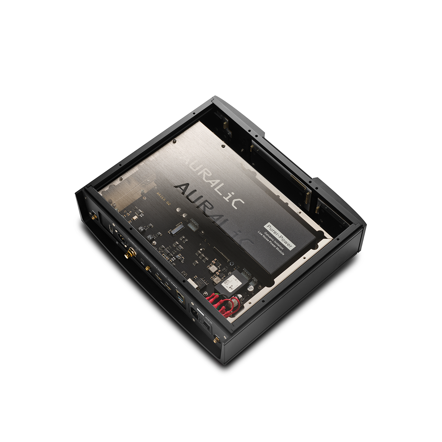 Pierwszy z dwóch zasilaczy Purer-Power zasila obwód przetwarzający ARIES G2.2, wyświetlacz LCD i pamięć – zarówno wewnętrzną, jak i podłączoną przez USB. Druga ścieżka Purer-Power jest dedykowana wrażliwym komponentom audio, takim jak zegar femto i wyjście audio USB. Oba zasilacze są galwanicznie odizolowane od siebie, aby zapewnić zerową interferencję EMI między nimi.